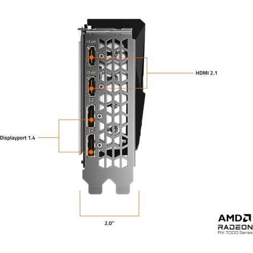 The Gigabyte Radeon RX 7600 is a strong 1080p gaming GPU from AMD’s RDNA 3 lineup, featuring GIGABYTE’s WINDFORCE cooling and a metal backplate. 8GB GDDR6. 2xHDMI and 2xDP ports.