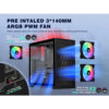 - High Airflow Mid Tower PC Case:To Ensure Adequate Airflow, 2x140mm ARGB PWM Front Fans & 1x140mm Rear Fan Are Pre-Installed; Fine Mesh Panel At The Front While Featuring 2 Magnetic Dust Filters On The Top And Bottom To Reduce The Dust.